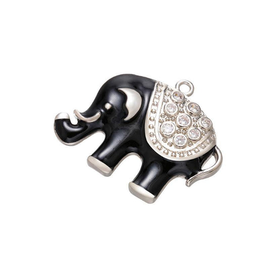 10pcs/lot 32*25mm CZ Paved Black Elephant Charms
