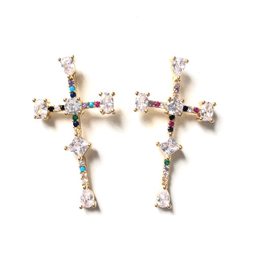 5-10pcs/lot 46*26mm Multicolor CZ Paved Cross Charms