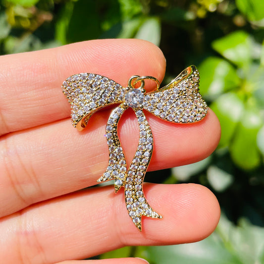 10pcs/lot 34*28.8mm CZ Paved Bow Bowknot Charms