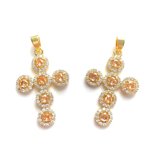 5-10pcs/lot Champagne Clear CZ Paved Cross Charms