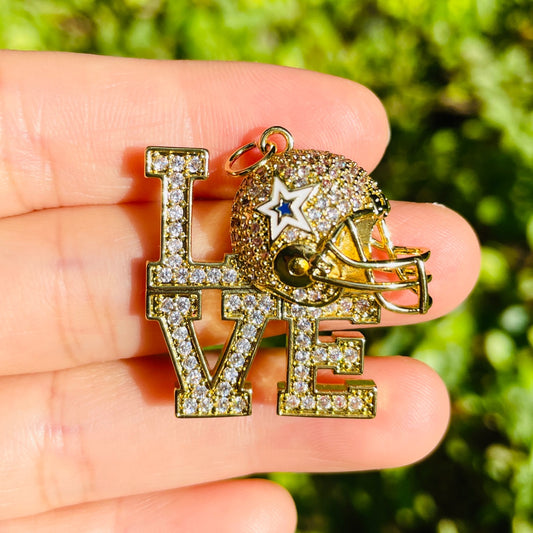 10pcs/lot CZ Paved LOVE Cowboys Helmet American Football Soccer Charms