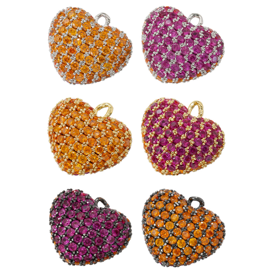 10pcs/lot 18*17mm Multicolor Diamond CZ Pave Heart Charm Pendants