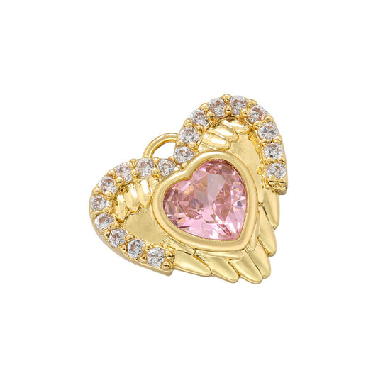 10pcs/lot Small Size CZ Paved Angel Wing Heart Charms