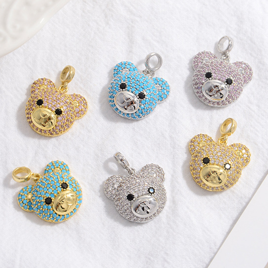 5-10pcs/lot Turquoise Green Pink Clear CZ Paved Cute Bear Head Charms