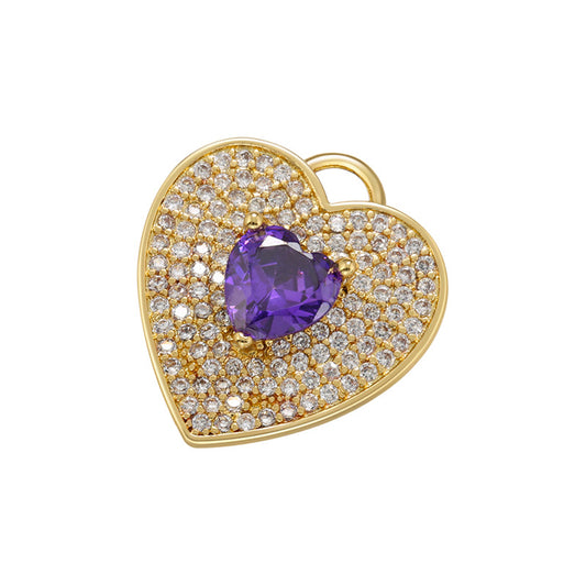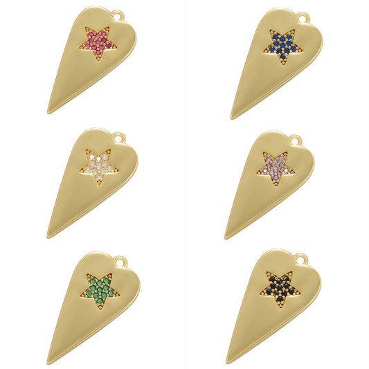 10pcs/lot 24.5*12mm Colorful CZ Pave Heart Charm Pendants