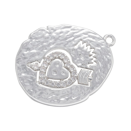 10pcs/lot 28*22mm CZ Pave Round Plate Crown Heart Charm Pendants