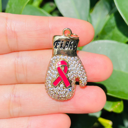 10pcs/lot CZ Pave Pink Ribbon Fight Gloves Charms - Breast Cancer Awareness