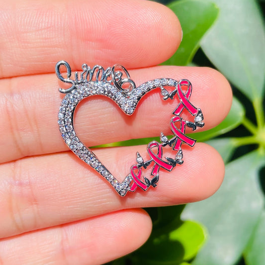 10pcs/lot CZ Pave Pink Ribbon Survivor Heart Charms - Breast Cancer Awareness