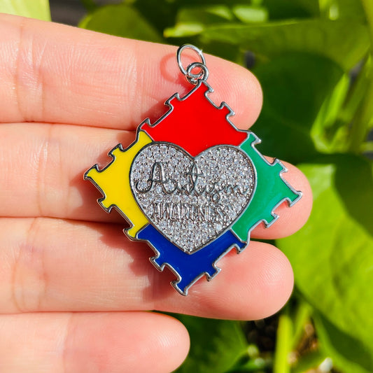 10pcs/lot CZ Pave Enamel Autism Awareness Puzzle Charms