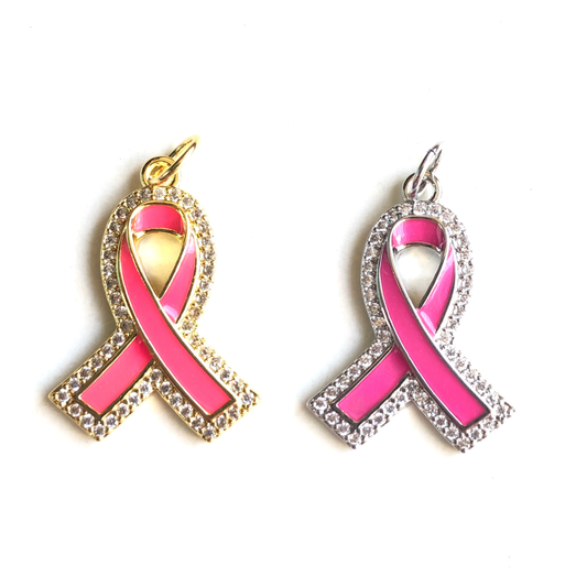 10pcs/lot CZ Paved Pink Blue Purple Ribbon Charms