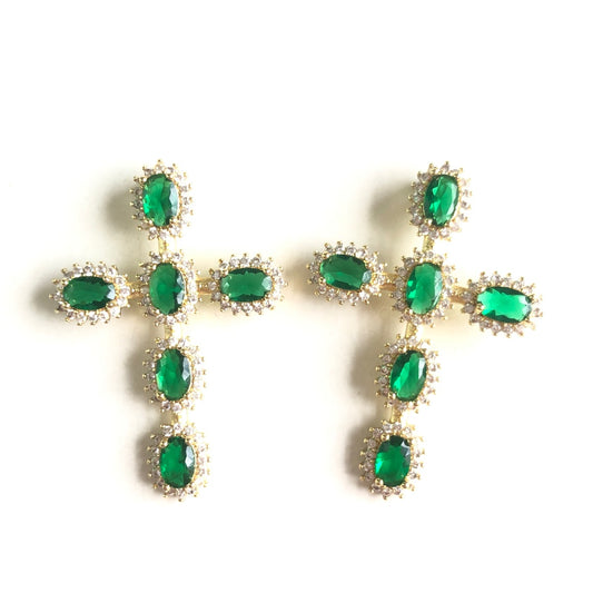 5-10pcs/lot Gold Plated Green CZ Paved Cross Charms