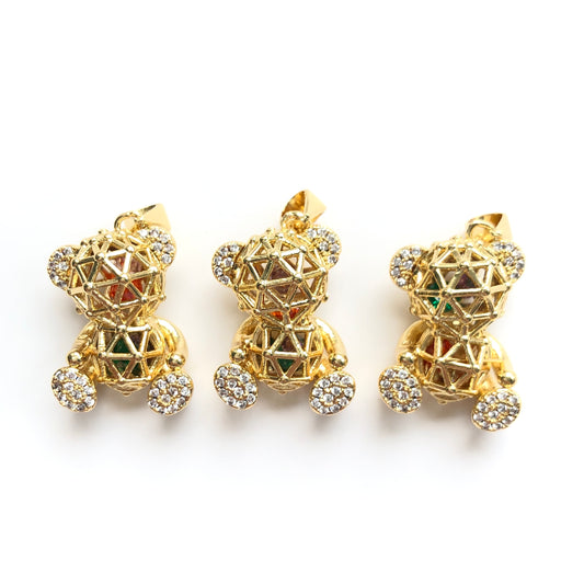 5-10pcs/lot CZ Paved Cute Hollow Bear Charms