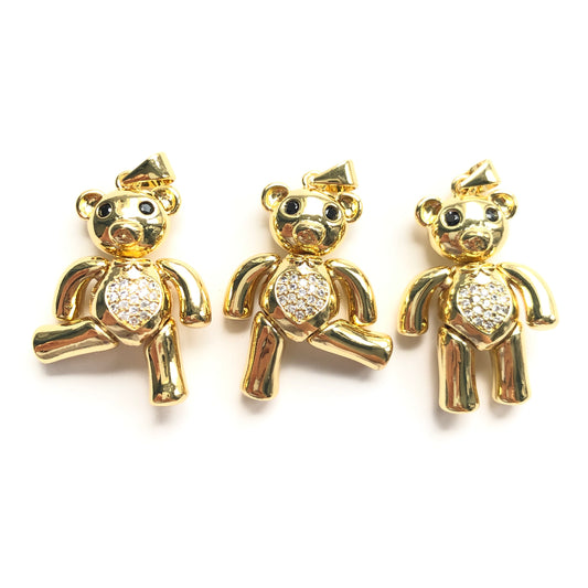 5-10pcs/lot CZ Paved Movable Cute Heart Bear Charms