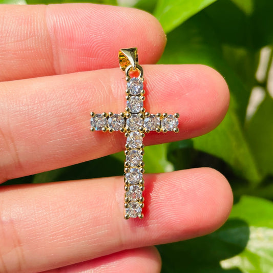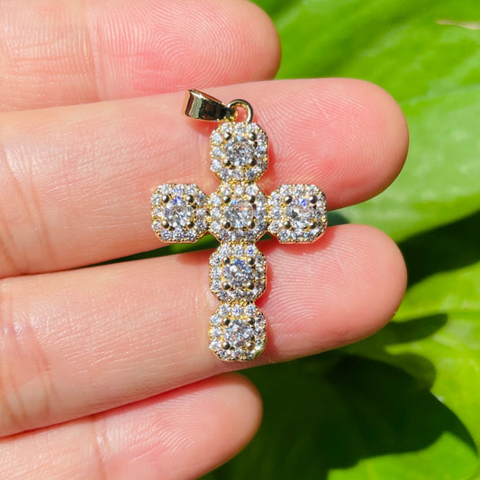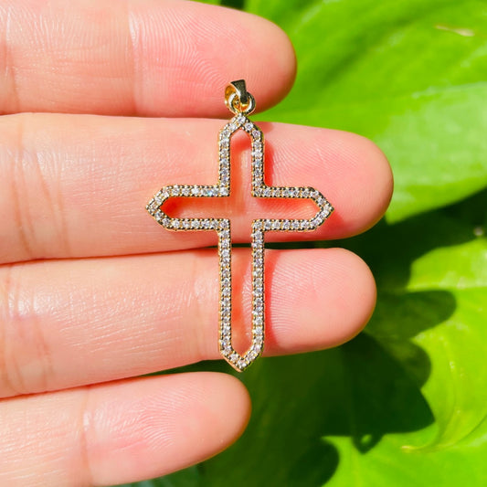 10pcs/lot Gold Silver Plated CZ Paved Cross Charms