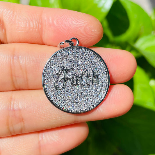 10pcs/lot 25mm CZ Pave Round Plate FAITH Quote Charms