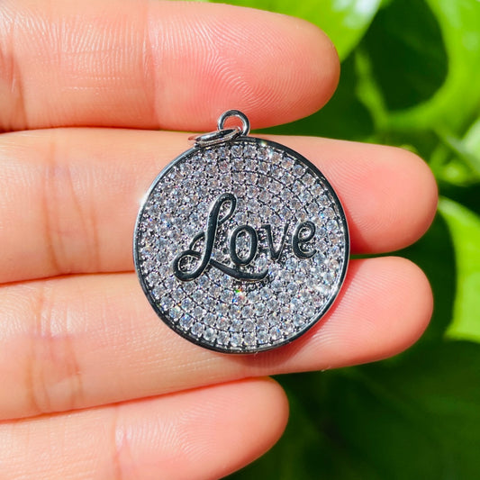 10pcs/lot 25mm CZ Pave Round Plate LOVE Quote Charms