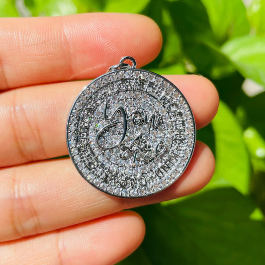 10pcs/lot 28mm CZ Pave Round Plate YOU ARE LOVED WORTHY KIND CAPABLE STRONG Quote Charms