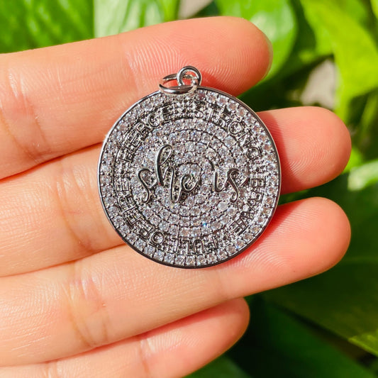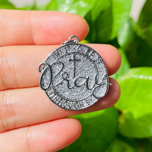 10pcs/lot 28mm CZ Pave Round Plate PRAY ON IT OVER IT THROUGH IT Quote Charms