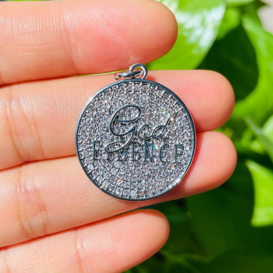 10pcs/lot 25mm CZ Pave Round Plate GODFIDENCE Quote Charms