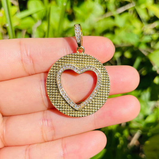 10pcs/lot 40*28.3mm CZ Pave Round Hollow Heart Charms