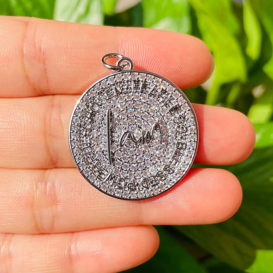 10pcs/lot 28mm CZ Pave Round Plate I am Chosen Fearless Blessed Powerful Quote Charms