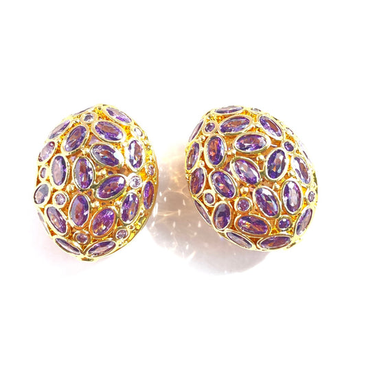 5pc 26.7*21mm Big Size Purple CZ Hollow Flat Oval Centerpiece CZ Egg Beads Spacers