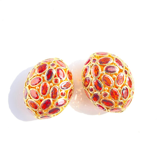 5pc 26.7*21mm Big Size Red CZ Hollow Flat Oval Centerpiece CZ Egg Beads Spacers