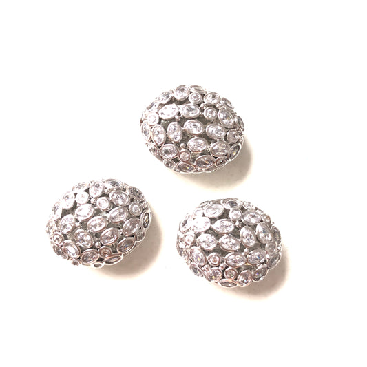 5pc 26.7*21mm Big Size Clear CZ Hollow Flat Oval Centerpiece CZ Egg Beads Spacers