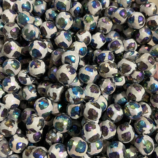 10mm Electroplated AB White Stripe Clear Faceted Tibetan Agate Stone Beads