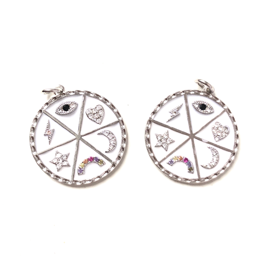 5pcs/lot 22mm CZ Paved Eye Moon Heart Rainbow Lightning Charms