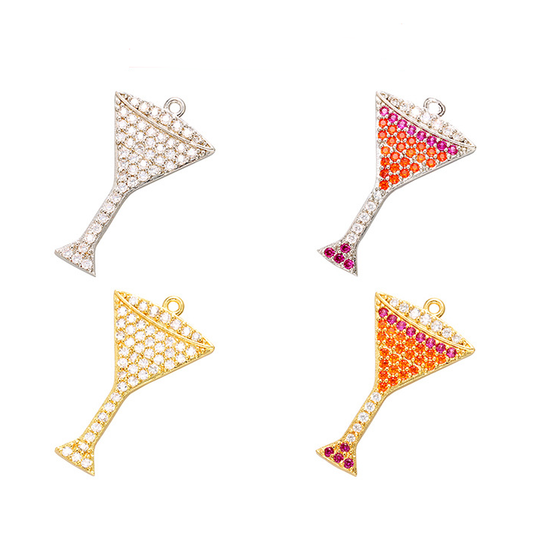 10pcs/lot 25*15mm CZ Paved Wine Glass Charms