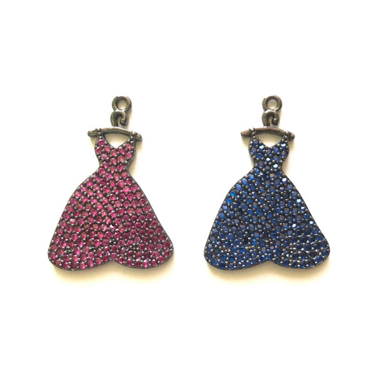 5pcs/lot 31*21mm Fuchsia & Blue CZ Paved Dress Charms
