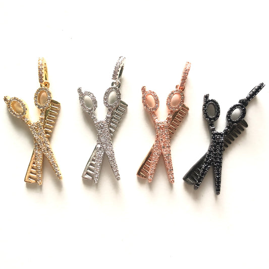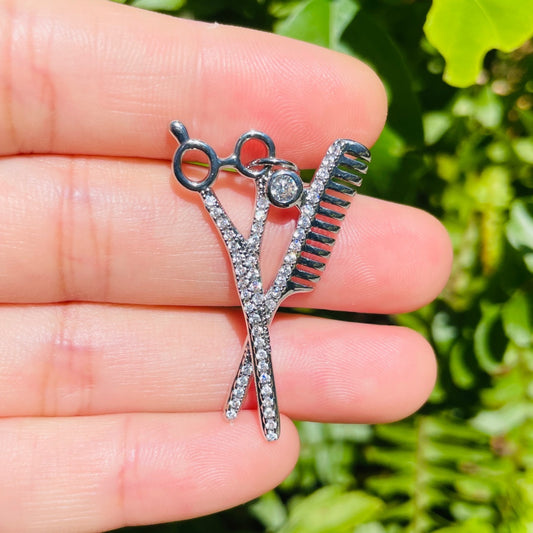10pcs/lot 34.5*22.3mm CZ Paved Scissor Comb Charms