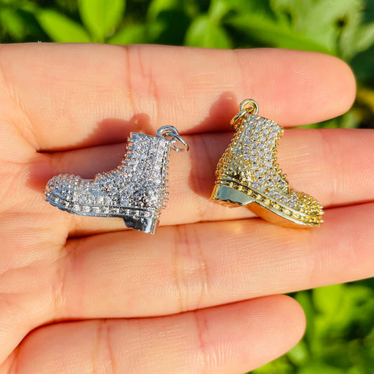 10pcs/lot 23*18mm CZ Paved 3D Boots Shoe Charms
