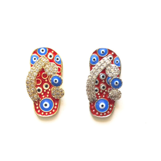 5-10pcs/lot 24*12mm CZ Paved Enamel Evil Eye Slipper Shoe Charms
