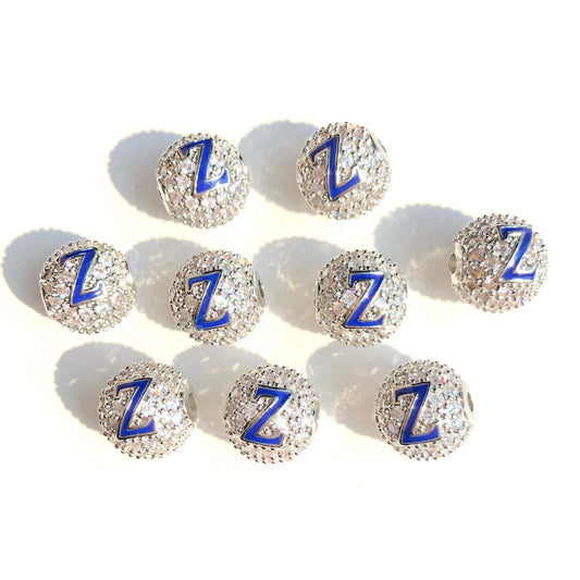 12pcs/lot 10mm Blue Enamel CZ Paved Greek Letters "Ζ", "Φ", "Β" Ball Spacers Beads