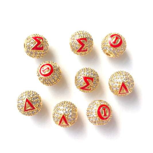 12pcs/lot 10mm Red Enamel CZ Paved Greek Letter "Δ", "Σ", "Θ" Ball Spacers Beads