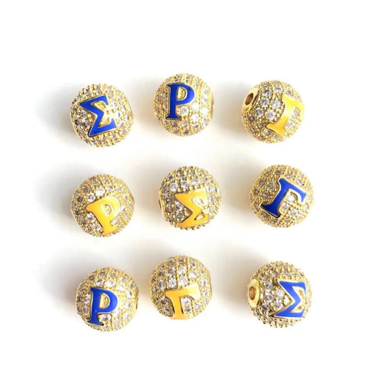 12pcs/lot 10mm Blue Yellow Enamel CZ Paved Greek Letter "Σ", "Γ", "Ρ" Ball Spacers Beads