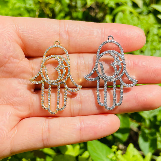 5-10pcs/lot 35*22mm CZ Paved Big Size Hamsa Charms