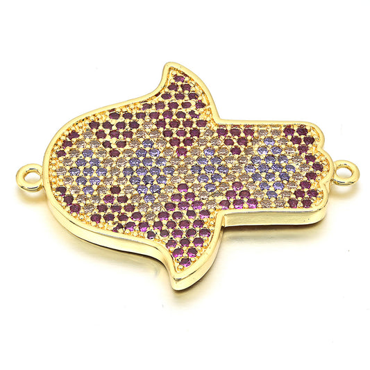 10pcs/lot 29*23mm Multicolor CZ Paved Hamsa Connectors