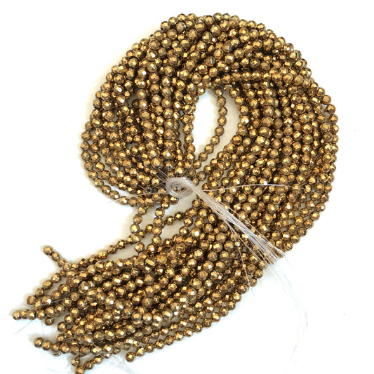 2 Strands/lot 6, 8,10mm Gold Hematite Round Faceted Beads