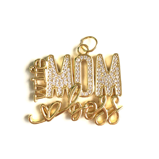 10pcs/lot CZ Pave Wife Boss Mom Words Charms-Mother's Day