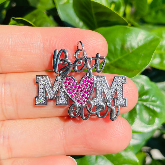 10pcs/lot CZ Pave Best Mom Ever Word Charms-Mother's Day