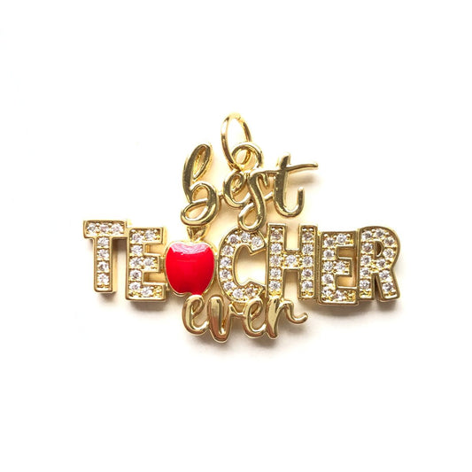 10pcs/lot 33.6*19.5mm CZ Paved Best Teacher Ever Word Charms for Graduation Teacher's Day