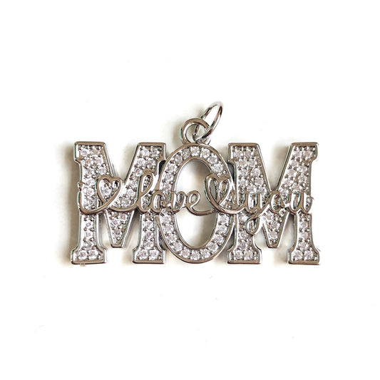 10pcs/lot CZ Pave I LOVE YOU Mom Word Charms-Mother's Day