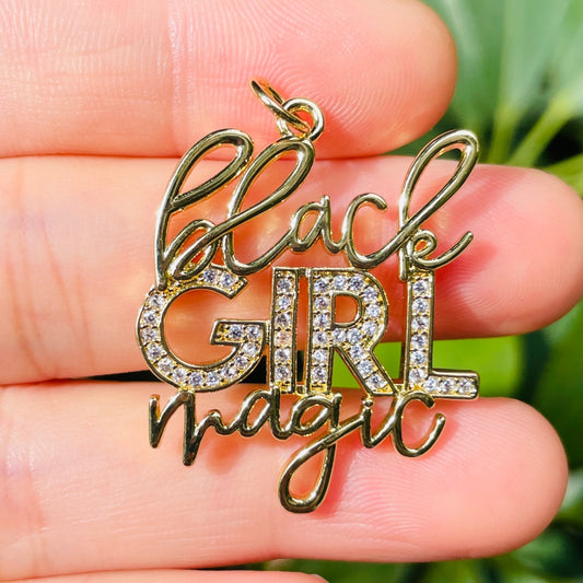 10pcs/lot CZ Paved Black Girl Magic Charms