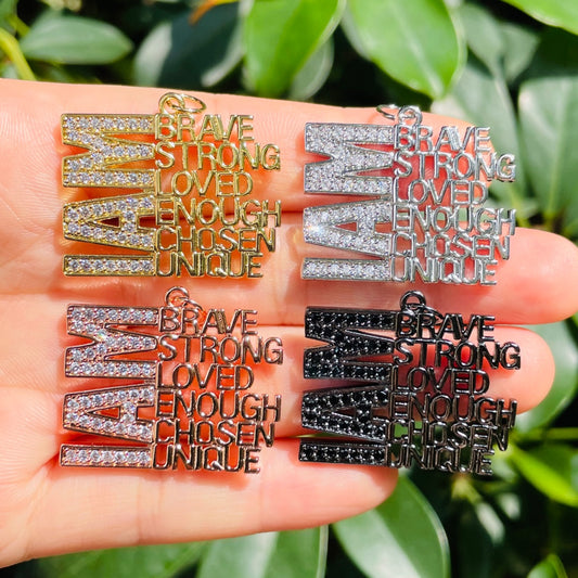 10pcs/lot CZ I Am Brave Strong Loved Enough Chosen Unique Word Charms