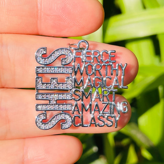 10pcs/lot CZ SHE IS FIERCE WORTHY MAGICAL SMART AMAZING CLASSY Word Charms