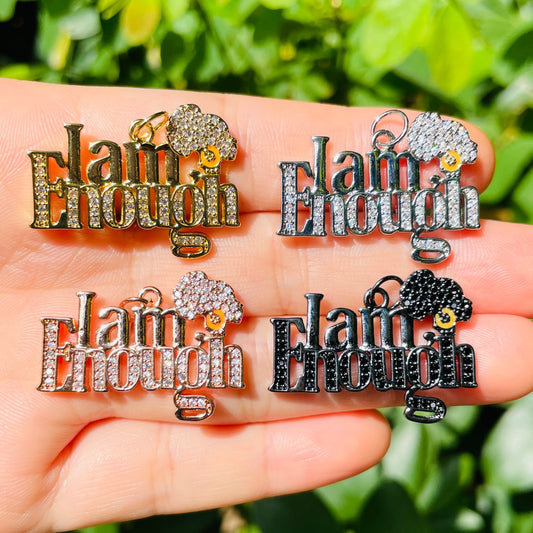10pcs/lot CZ Paved I Am Enough Word Charms