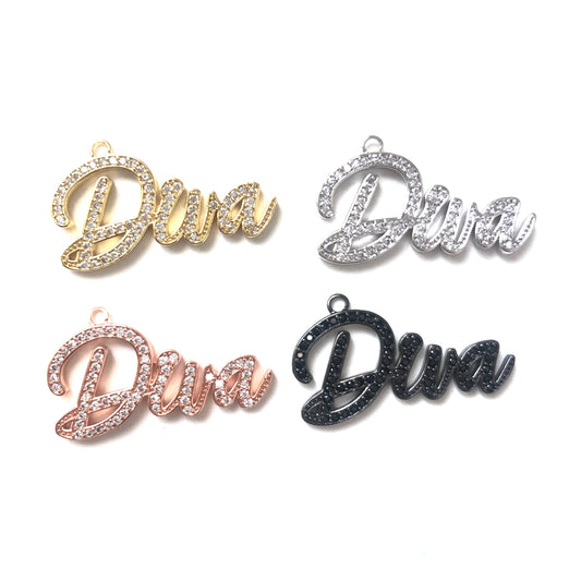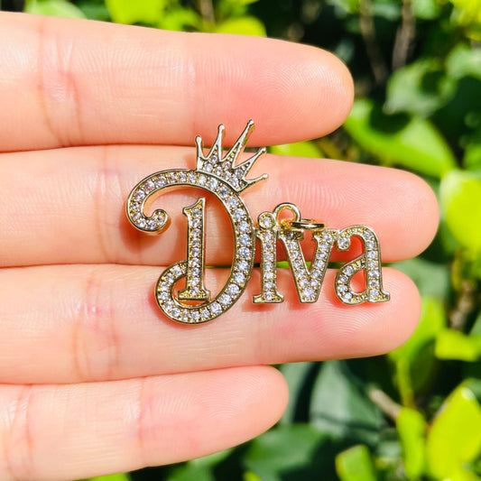 10pcs/lot 34*26.5mm CZ Pave Crown DIVA Word Charms